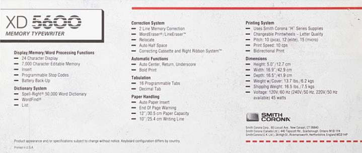 Prospekt für elektronische Schreibmaschine Smith-Corona XD 5600 Memory Typewriter