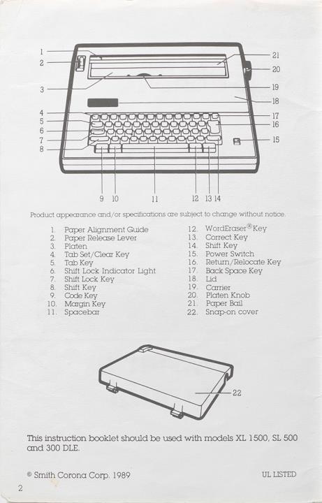 Bedienungsanleitung für Schreibmaschine Smith-Corona Nr. 00783601 Rev. A