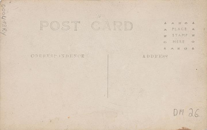 Illustrierte Postkarte; Fotografie, monochrom Rückseite: Freilichtaufnahme; Mädchen mit drei Schreibmaschinen Vorderseite nicht beschrieben