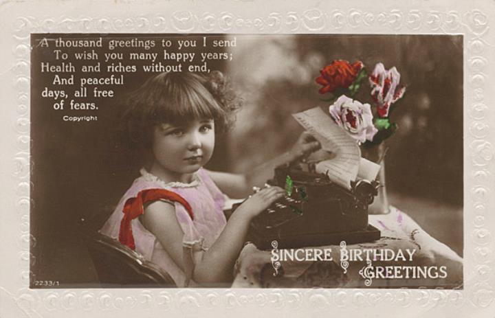 Kind, Schreibmaschine, Gruß, Glückwunsch