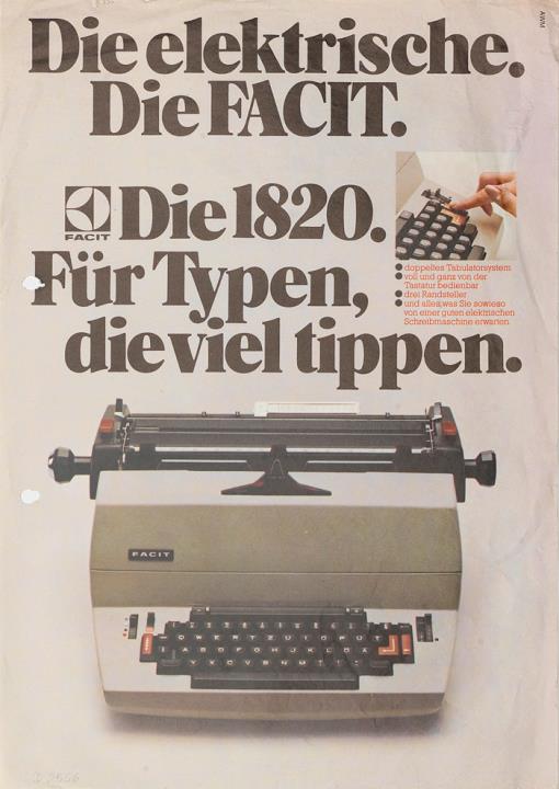 Prospekt für elektrische Schreibmaschine Facit 1820 Für Typen, die viel tippen