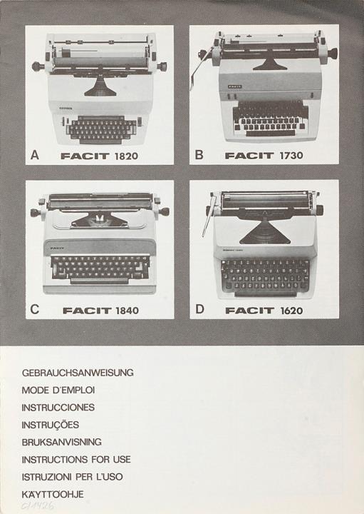 Bedienungsanleitung achtsprachig für Schreibmaschinen Facit 1820, 1730, 1840 und 1620
