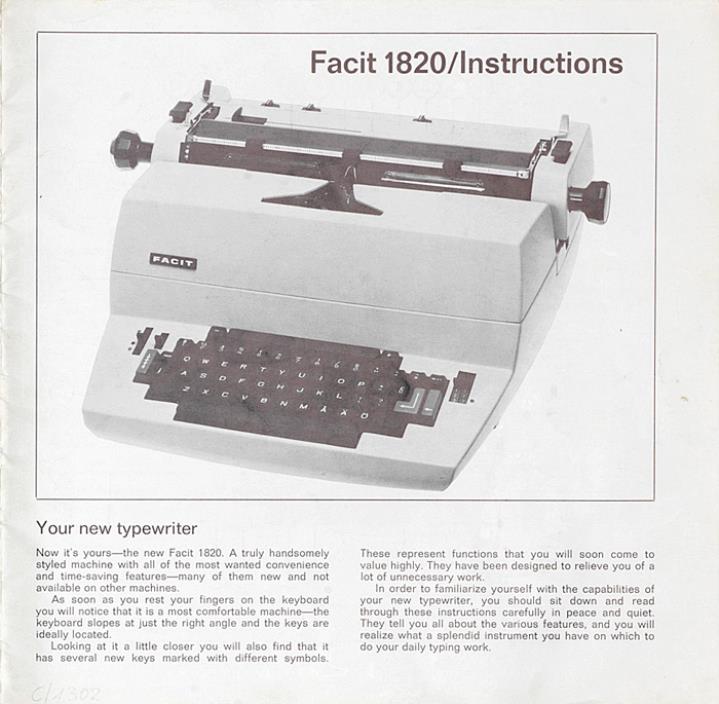 Bedienungsanleitung für elektrische Schreibmaschine Facit 1820 Nr. 1820.01.01 Eng.10M9.73