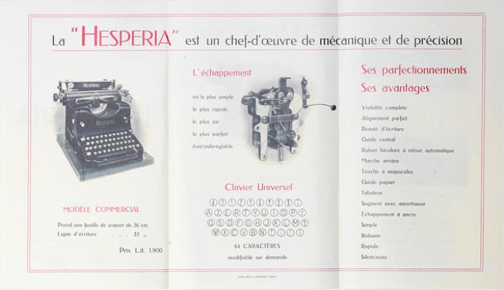 Faltprospekt in französischer Sprache für Schreibmaschine Hesperia