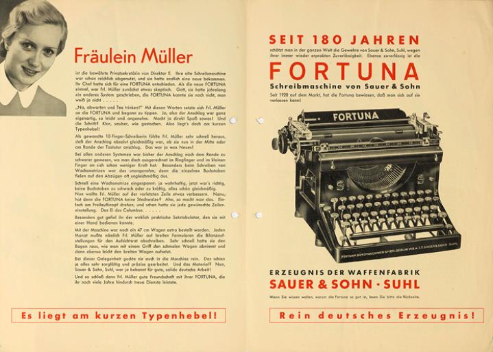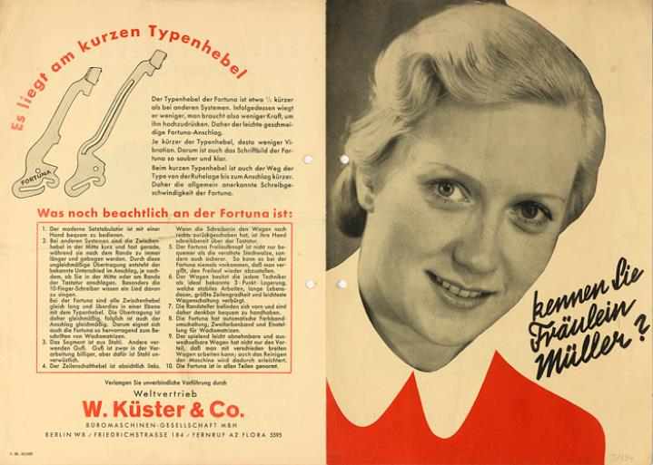 Faltprospekt für Schreibmaschine Fortuna Nr. V.35.40,000