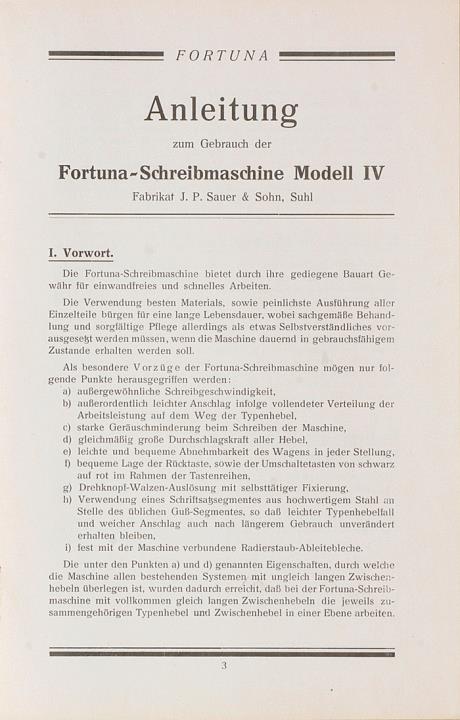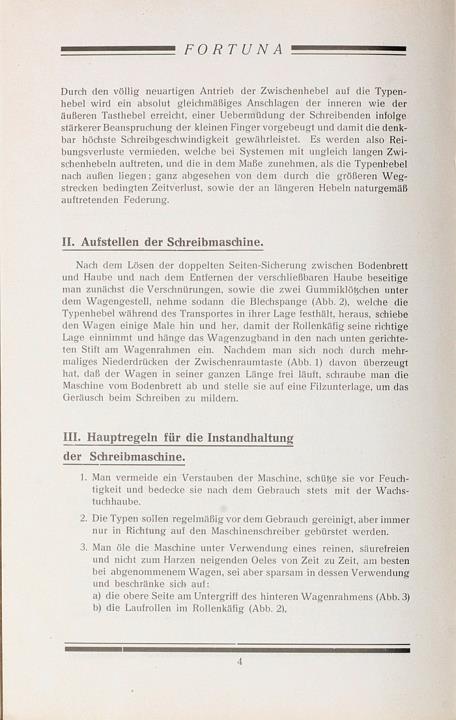 Bedienungsanleitung für Schreibmaschine Fortuna 4