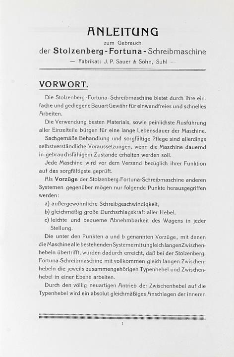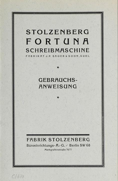 Stolzenberg Fortuna Schreibmaschine Gebrauchsanweisung