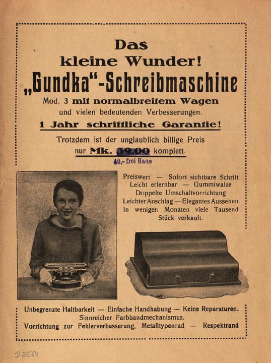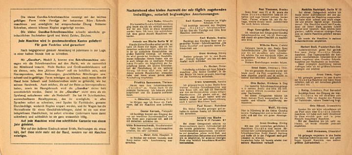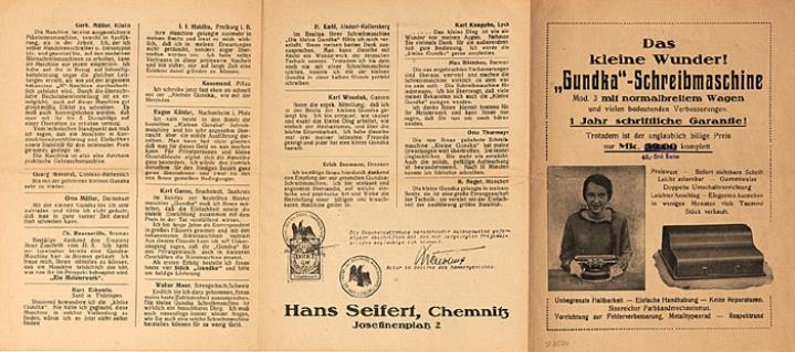 Faltprospekt für Schreibmaschine Gundka Mod. 3
