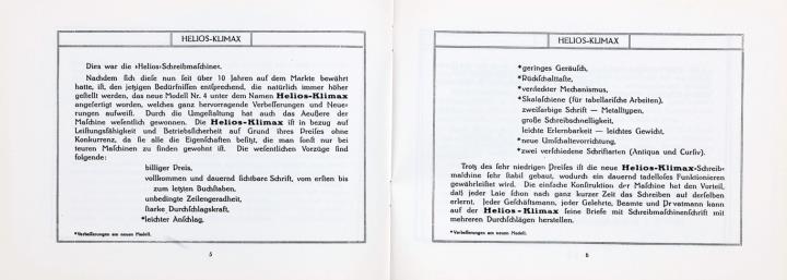 Prospekt für Schreibmaschine Helios Klimax Nachdruck