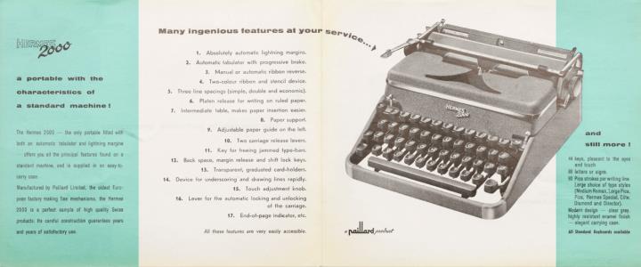 Faltprospekt für Schreibmaschine Hermes 2000 Nr. 510 (English) Mosen