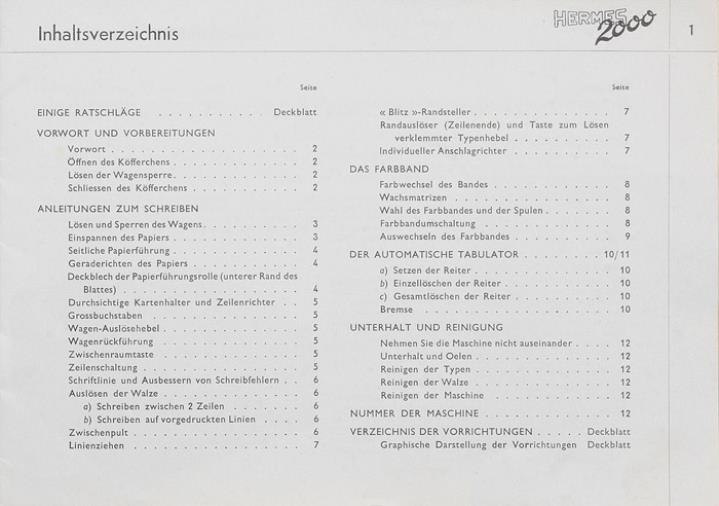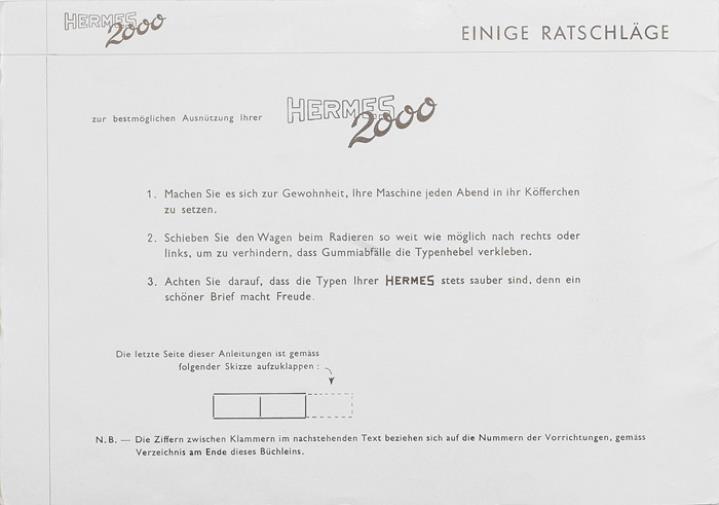 Bedienungsanleitung für Schreibmaschine Hermes 2000 Nr. 504 G (allemand) IRL
