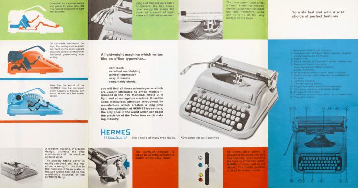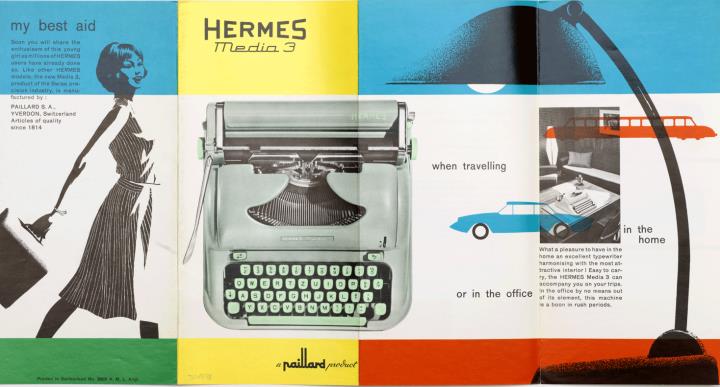 Faltprospekt für Schreibmaschine Hermes Media Nr. 3503 A. M. L. Angl.