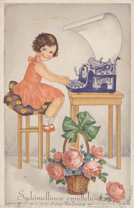 Kind, Schreibmaschine, Gruß, Glückwunsch