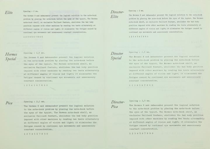 Schriftartenverzeichnis für Schreibmaschine Hermes Nr. 924 C USA HCo