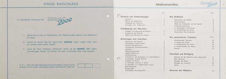 Bedienungsanleitung für Schreibmaschine Hermes 2000 Nr. 504 C1 (deutsch) IRL