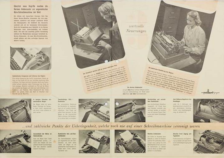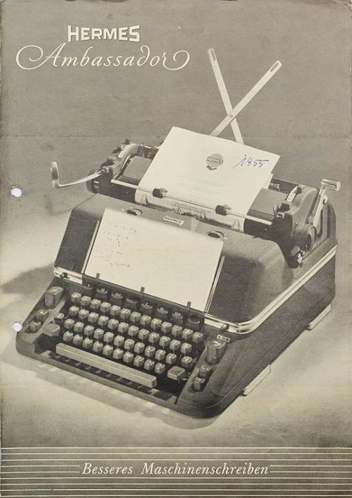 Faltprospekt für Schreibmaschine Hermes Ambassador Besseres Maschinenschreiben Nr. 715 F (allemand) SPV Datum handschriftlich vermerkt