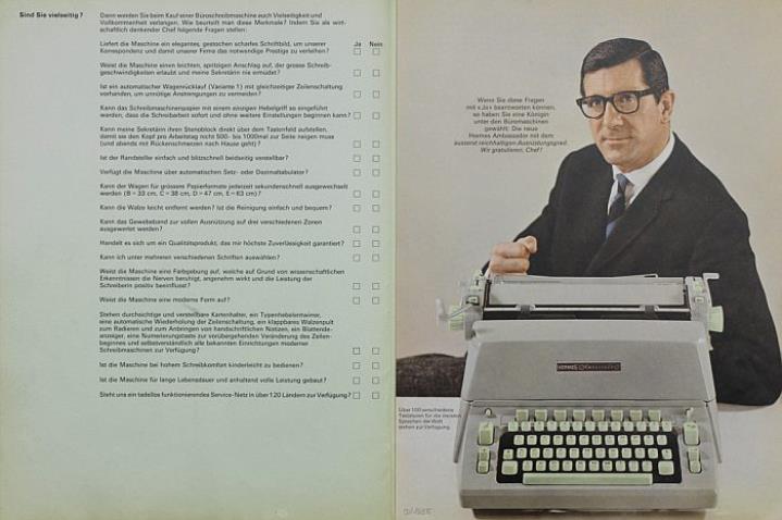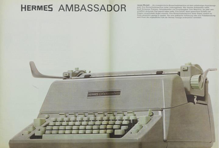 Faltprospekt für Büroschreibmaschine Hermes Ambassador Nr. 736 B All.