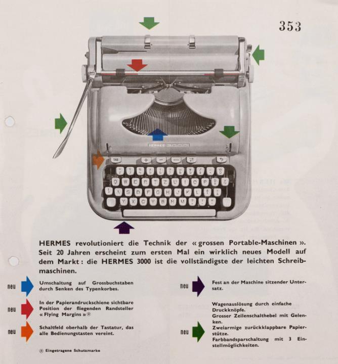 Faltprospekt für Schreibmaschine Hermes 3000 Nr. 3006-I.R.L.-all.
