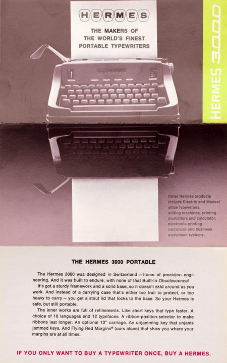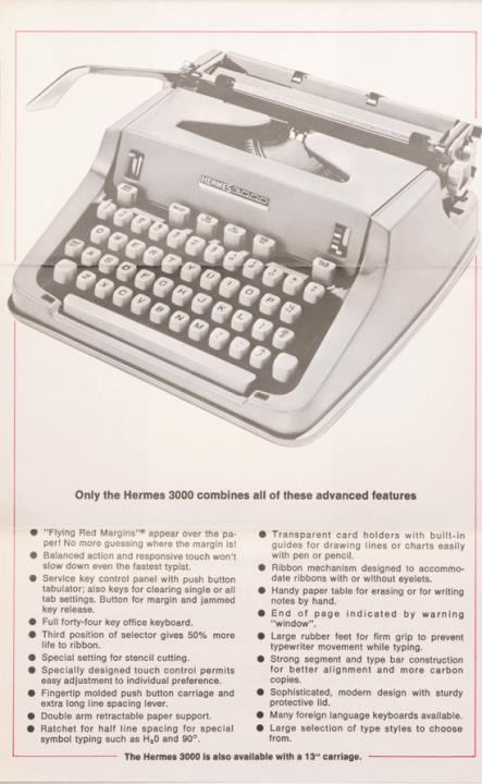 Faltprospekt für Schreibmaschine Hermes 3000 Hermes the makers of the world's finest portable typewriter