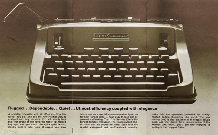Faltprospekt für Schreibmaschine Hermes 3000 (November 1968) Beautiful Sensitive Hardworking
