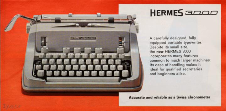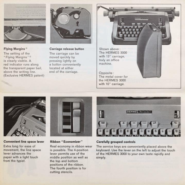 Faltprospekt für Schreibmaschine Hermes 3000 Accurate and reliable as a Swiss chronometer Nr. 3020 D-Angl.