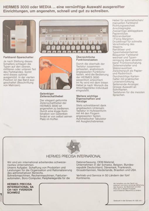 Prospekt für Schreibmaschine Hermes 3000 und Media Nr. 925 (All.)