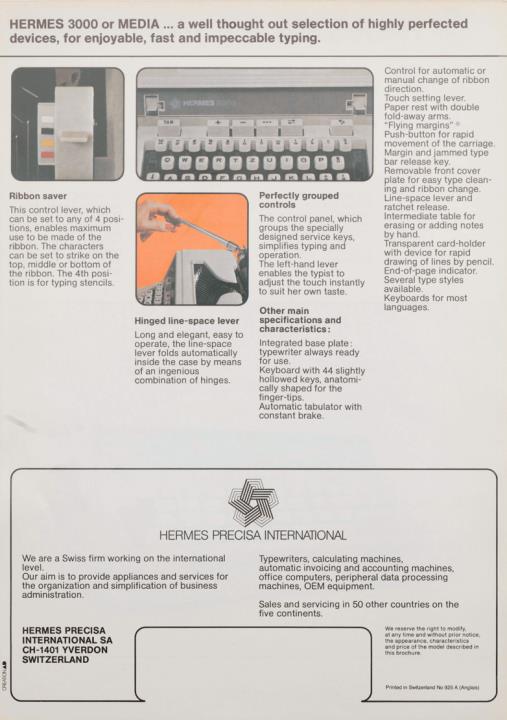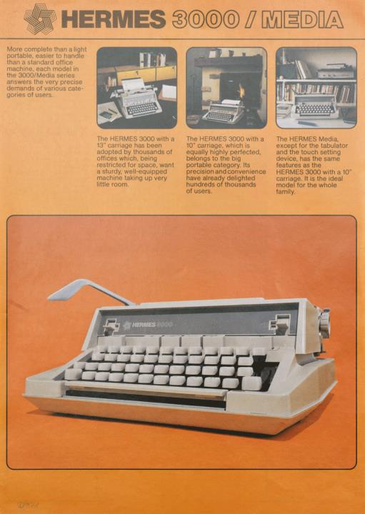 Prospekt für Schreibmaschine Hermes 3000 und Media Nr. 925 A (Anglais)