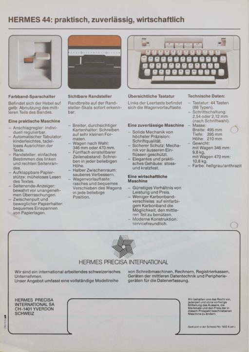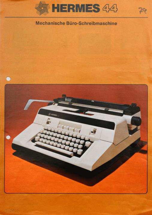 Prospekt für Schreibmaschine Hermes 44 Nr. 1602 A (all.) Datum handschriftlich vermerkt
