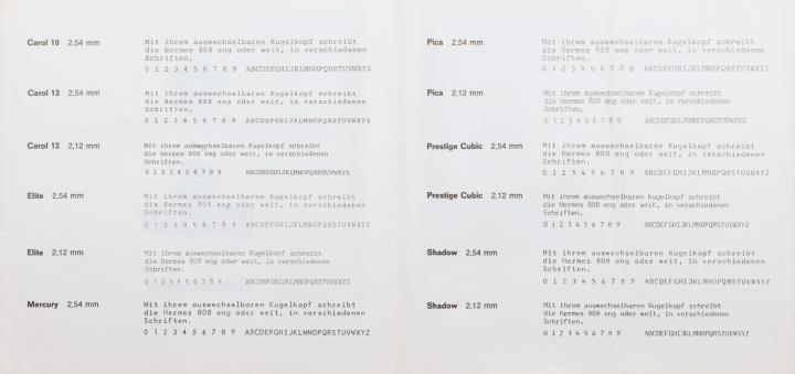 Schriftmusterprospekt für Schreibmaschine Hermes 808 Nr. 1406 (Beilage)