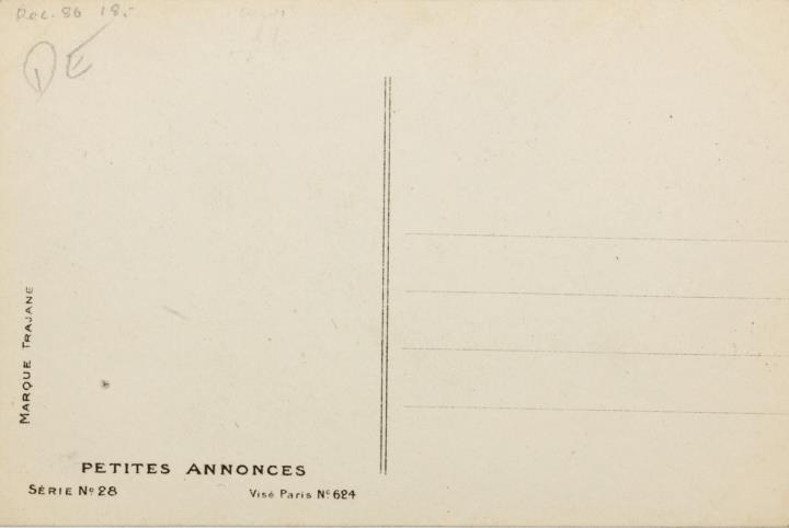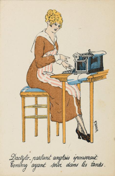 Illustrierte Postkarte; Grafik, polychrom; Serie N° 28 Petites Annonces, Grafik: Pero Rückseite: Frau/Sekretärin mit Schreibmaschine Vorderseite nicht beschrieben