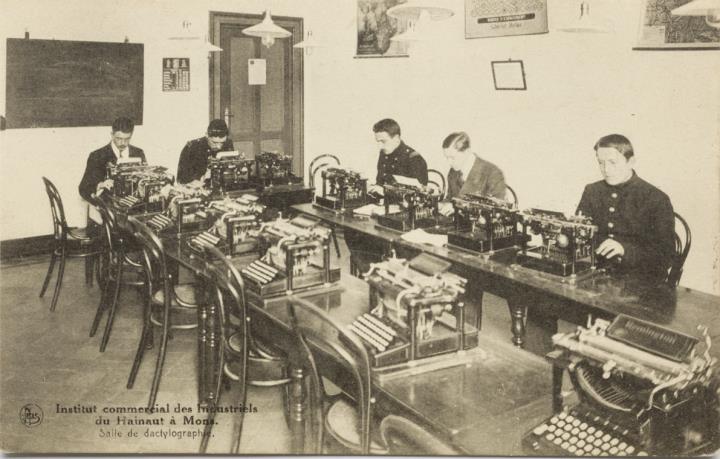 Institut commercial des Industriels du Hainaut à Mons. Salle de dactylographie