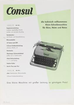 Prospekt für Schreibmaschine Consul Modell T, Modell S die technisch vollkommene Klein-Schreibmaschine für Büro, Heim und Reise
