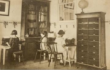 Next to literature on the history of technology, of the typewriter and the office, the Archive holds patent letters, textbooks and instruction manuals as well as historical postcards, letters, photographs and various kinds of advertising (leaflets and brochures, advertising stamps, newspaper ads, posters and signs, promotional gifts).
