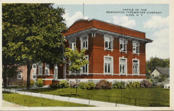 Illustrierte Postkarte; Fotografie, koloriert; Nr. 44551 Rückseite: Bürogebäude der Remington Schreibmaschinenwerke Vorderseite nicht beschrieben