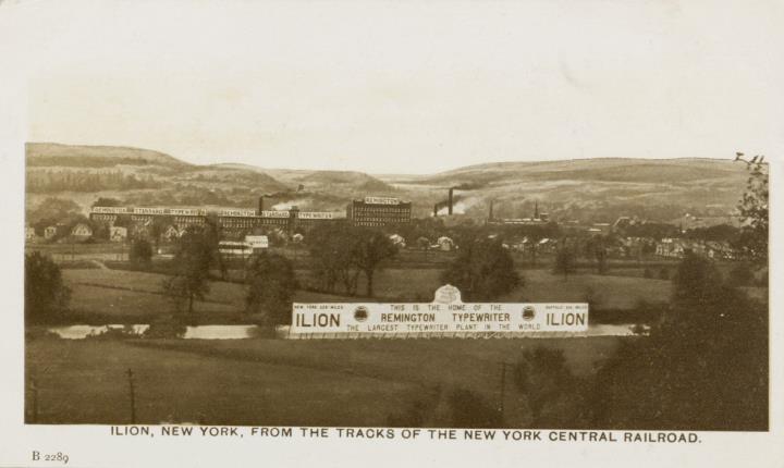 Illustrierte Postkarte; Fotografie, monochrom; Nr. B 2289 Rückseite: Landschaftsaufnahme mit Ansicht der Remington Schreibmaschinenwerke Vorderseite nicht beschrieben
