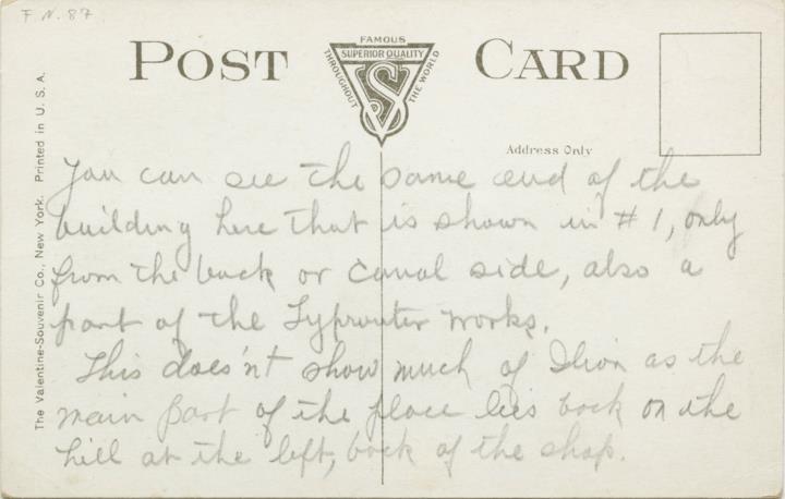 Illustrierte Postkarte; Fotografie, koloriert; Nr. 222091 Rückseite: Luftaufnahme; Stadt-/Landschaftsansicht mit Gebäuden der Remington Schreibmaschinenwerke Vorderseite beschrieben