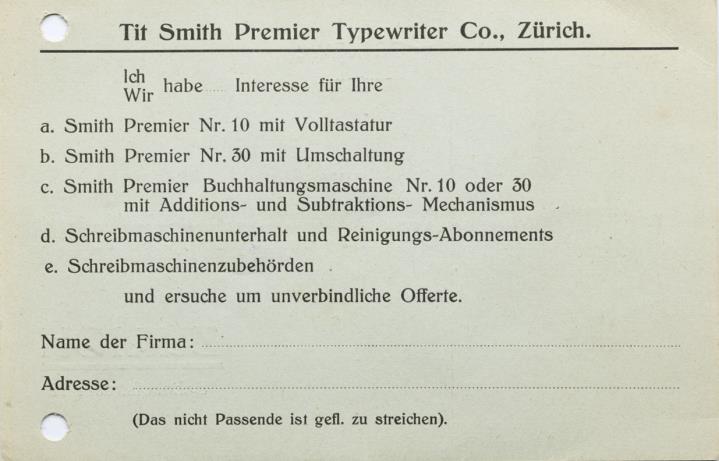 Tit. Smith Premier Typewriter Co. Zürich