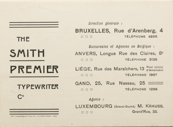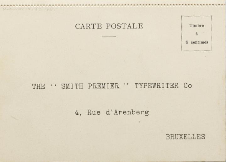 Next to literature on the history of technology, of the typewriter and the office, the Archive holds patent letters, textbooks and instruction manuals as well as historical postcards, letters, photographs and various kinds of advertising (leaflets and brochures, advertising stamps, newspaper ads, posters and signs, promotional gifts).