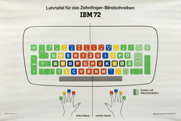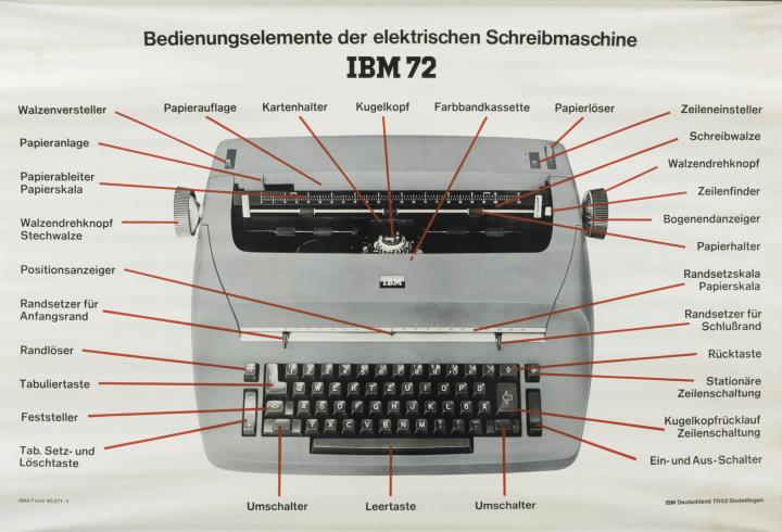 Bedienungselemente der elektrischen Schreibmaschine IBM 72 / Lehrtafel für das Zehnfinger-Blindschreiben IBM 72