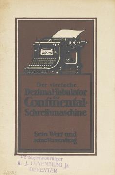 Next to literature on the history of technology, of the typewriter and the office, the Archive holds patent letters, textbooks and instruction manuals as well as historical postcards, letters, photographs and various kinds of advertising (leaflets and brochures, advertising stamps, newspaper ads, posters and signs, promotional gifts).