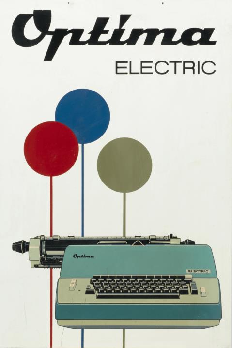 Werbeschild für Schreibmaschine Optima Electric gedruckt auf flexibler Kunststoffplatte