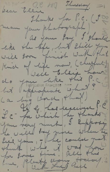 Illustrierte Postkarte; Fotografie, koloriert; Serie Leo 188 Rückseite: Frau mit Schreibmaschine, Blick zum Betrachter Vorderseite beschrieben
