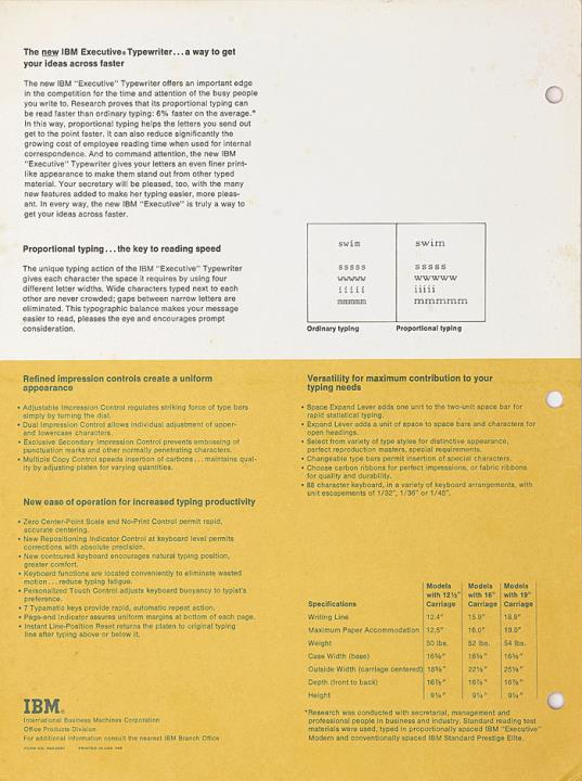 Prospekt für Schreibmaschine IBM Executive Nr. 543-0051
