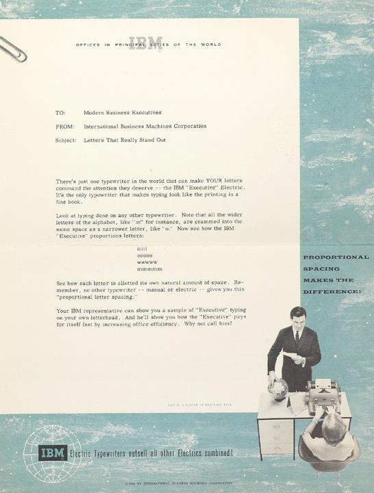 Faltprospekt für Schreibmaschine IBM electric Executive Nr. 55-6928