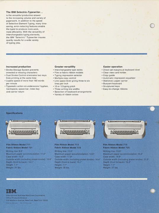 Prospekt für Kugelkopfschreibmaschine IBM Selectric Nr. 545-0035