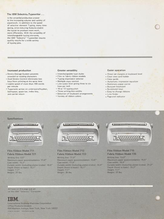 Prospekt für Kugelkopfschreibmaschine IBM Selectric Nr. 545-0035-3