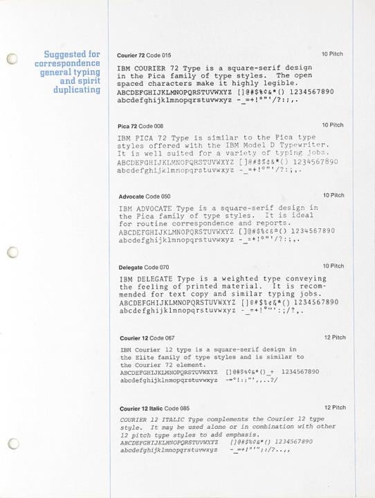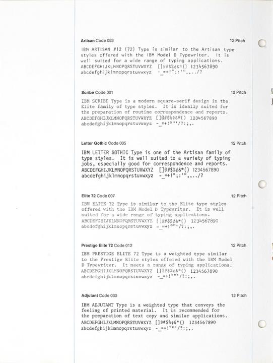 Schriftartenverzeichnis für Kugelkopfschreibmaschine IBM Selectric Nr. 542-0036-4