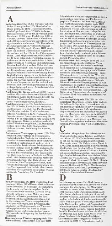 Faltprospekt mit Informationen von A bis W zu Schreibmaschinenhersteller IBM Nr. D 12-0016-4