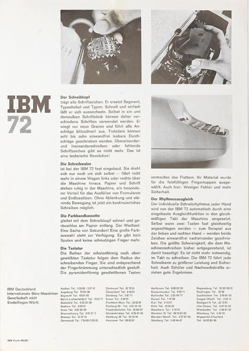 Prospekt für Kugelkopfschreibmaschine IBM 72 Nr. 45021