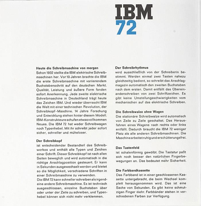 Faltprospekt für Kugelkopfschreibmaschine IBM 72 Nr. 45020